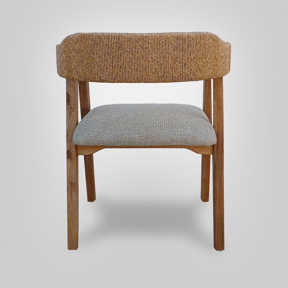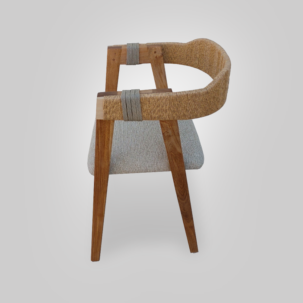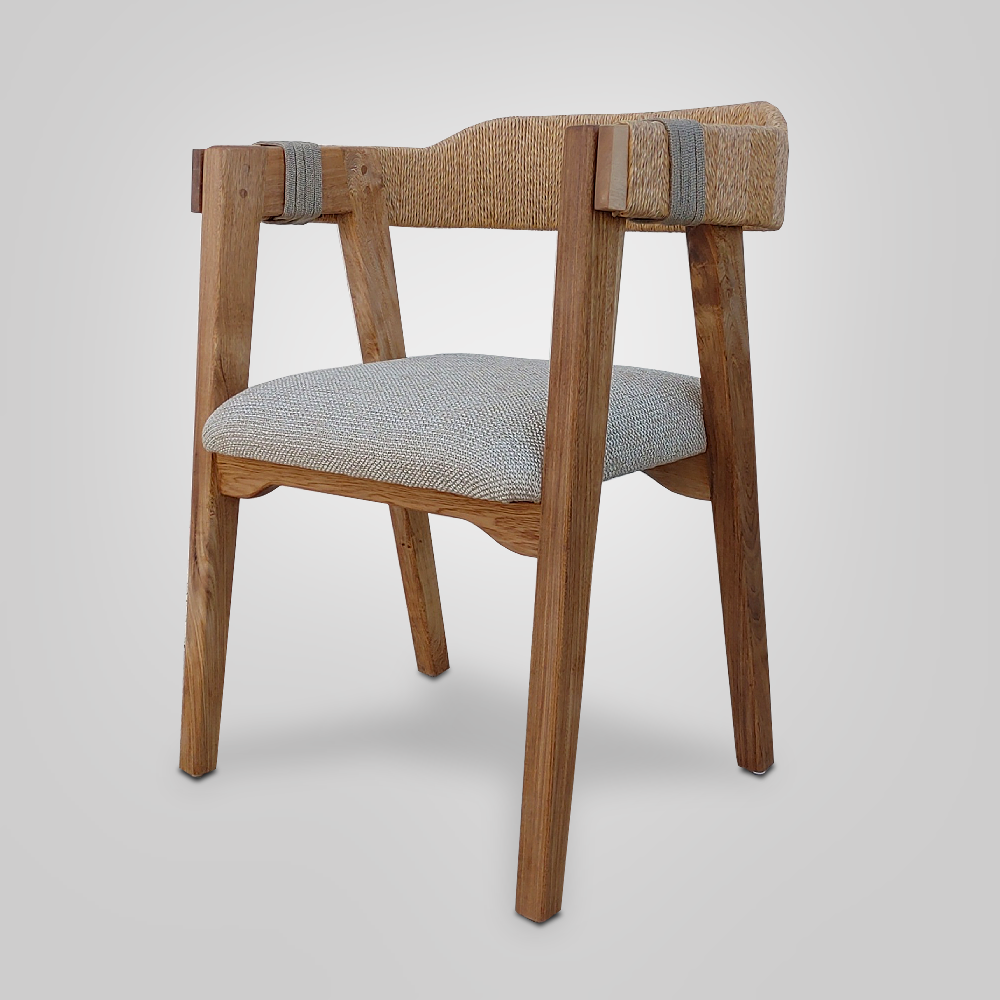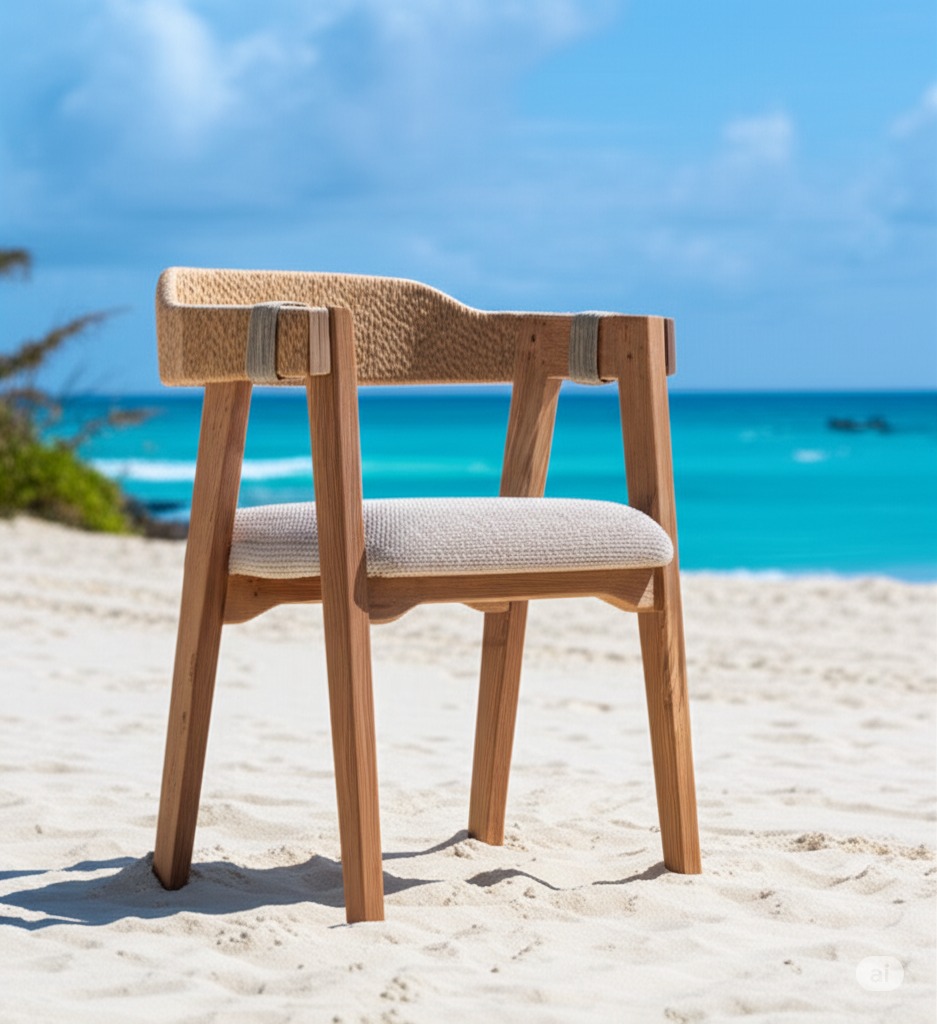 La Silla Bacalar con respaldo tejido es una elegante combinación de diseño contemporáneo y artesanía tradicional. Fabricada en madera sólida de rosa morada, encino, teca o tzalam, su respaldo tejido a mano en palma sintética brinda un aspecto sofisticado y único. El asiento tapizado en tela añade un extra de confort, mientras el acabado en aceite y cera resalta la belleza natural de la madera. Esta silla es perfecta para quienes buscan agregar carácter y autenticidad a sus espacios.