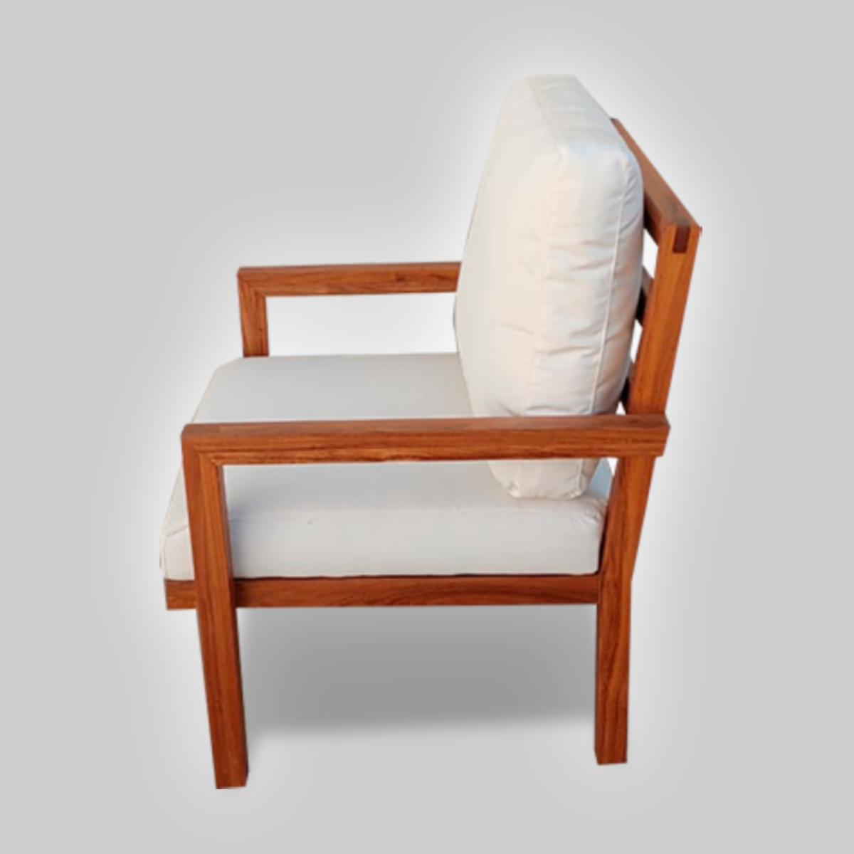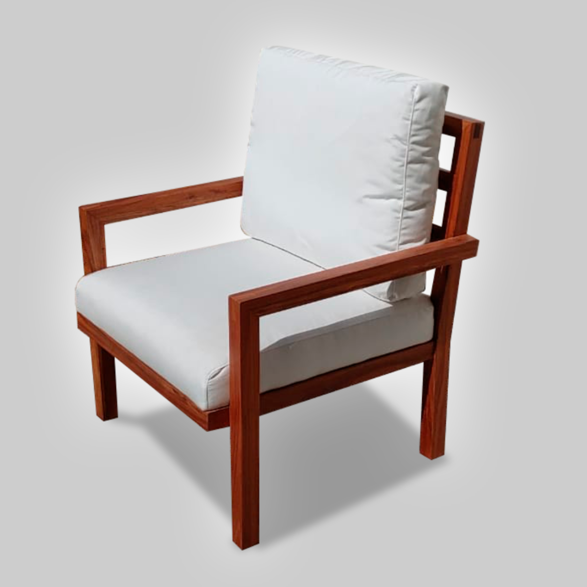 El Sillón Individual Janitzio es una pieza que fusiona el diseño moderno con la calidez artesanal. Fabricado en madera sólida de rosa morada, parota, encino, teca o tzalam, su asiento fijo y cómodo cojín de respaldo te invitan a relajarte. La madera está terminada con aceite, que protege y embellece la madera realzando su belleza natural.